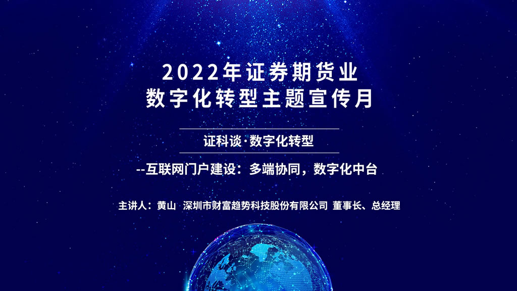 信息技术服务机构是证券期货业金融科技生态的重要组成部分,是支撑证券期货业数字化转型的中坚力量。在中国证监会科技监管局指导、中证技术公司组织下,深圳市财富趋势科技股份有限公司作为行业信息技术服务机构的代表之一,基于“证科谈·数字化转型”主题,以“互联网门户建设:多端协同,数字化中台”为切入点,分享数字化实践经验和体会。