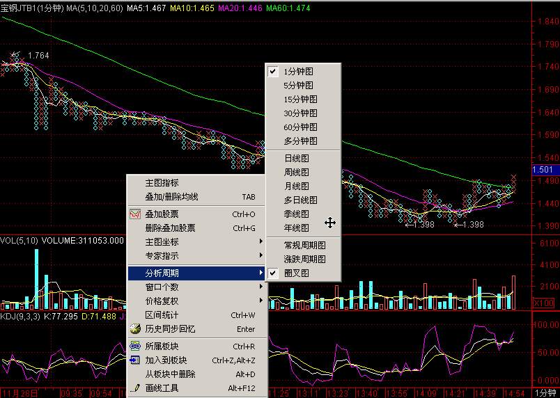 1.短线周期:1分钟线和多分钟线