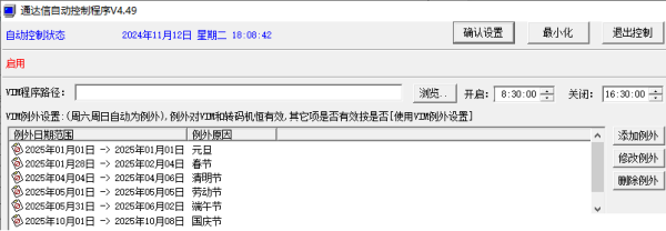 3、将例外文件Except.dat覆盖更新到自动控制程序所在目录。